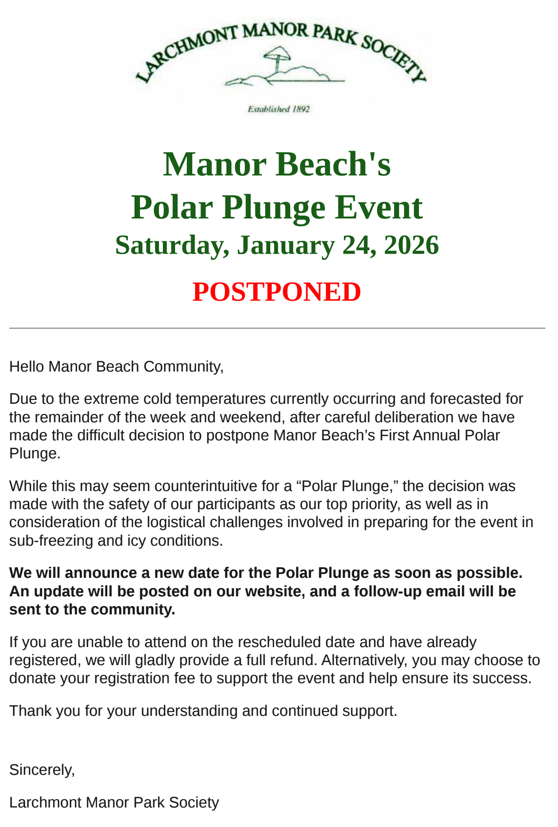 Throughout the years, Larchmont Manor Park Society, while remaining a private not-for-profit organization, provides many services to its community. These services include but are not limited to a seasonal bathing beach for Larchmont residents, the offering of programs to the children of the community and providing a nature preserve for native plants and animals.